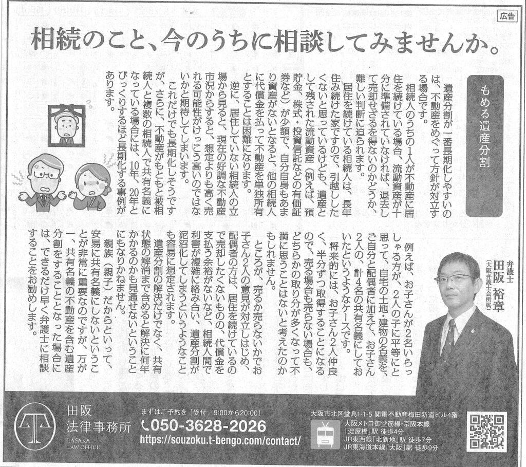 【もめる遺産分割】産経新聞掲載のお知らせ