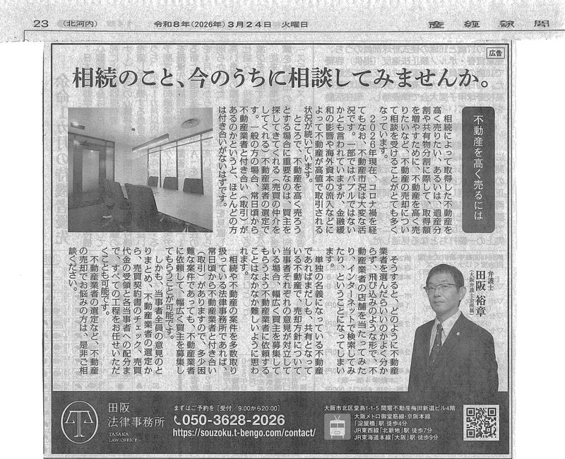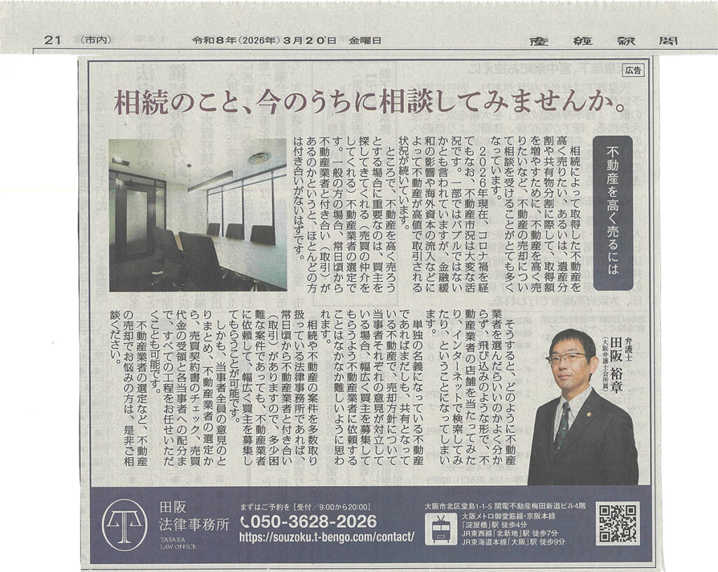 【不動産を高く売るには】産経新聞掲載のお知らせ